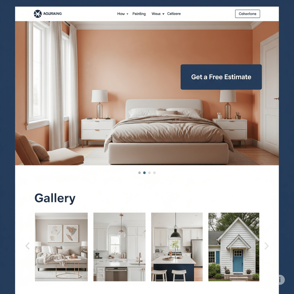 Concept: A clean, visually driven website showcasing a painter’s artistic talent and range of services. Emphasis on a vibrant gallery and easy contact for project inquiries.